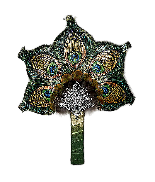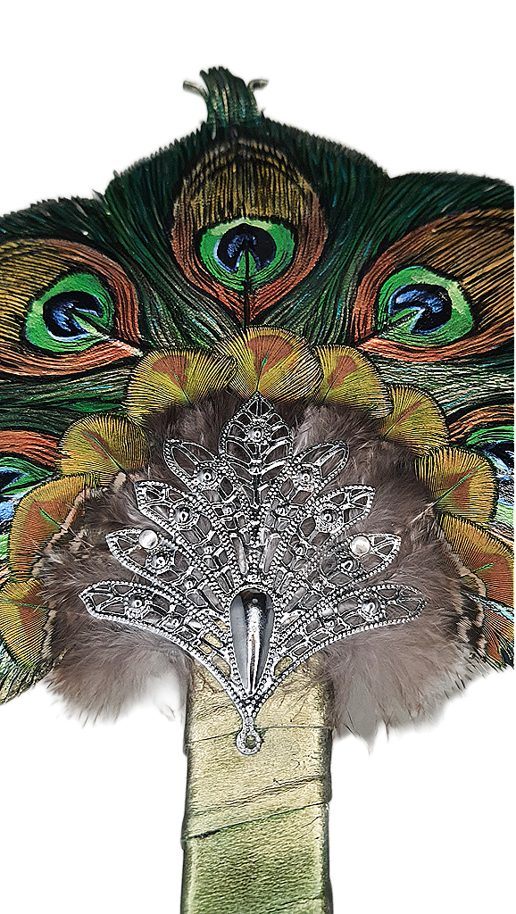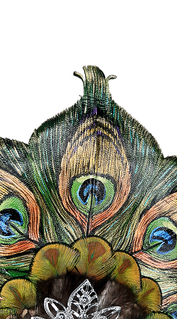 Unique hand fan made from high-quality leather stylized after a phoenix feathers. Painted with acrylic paints, covered with a protective polish.