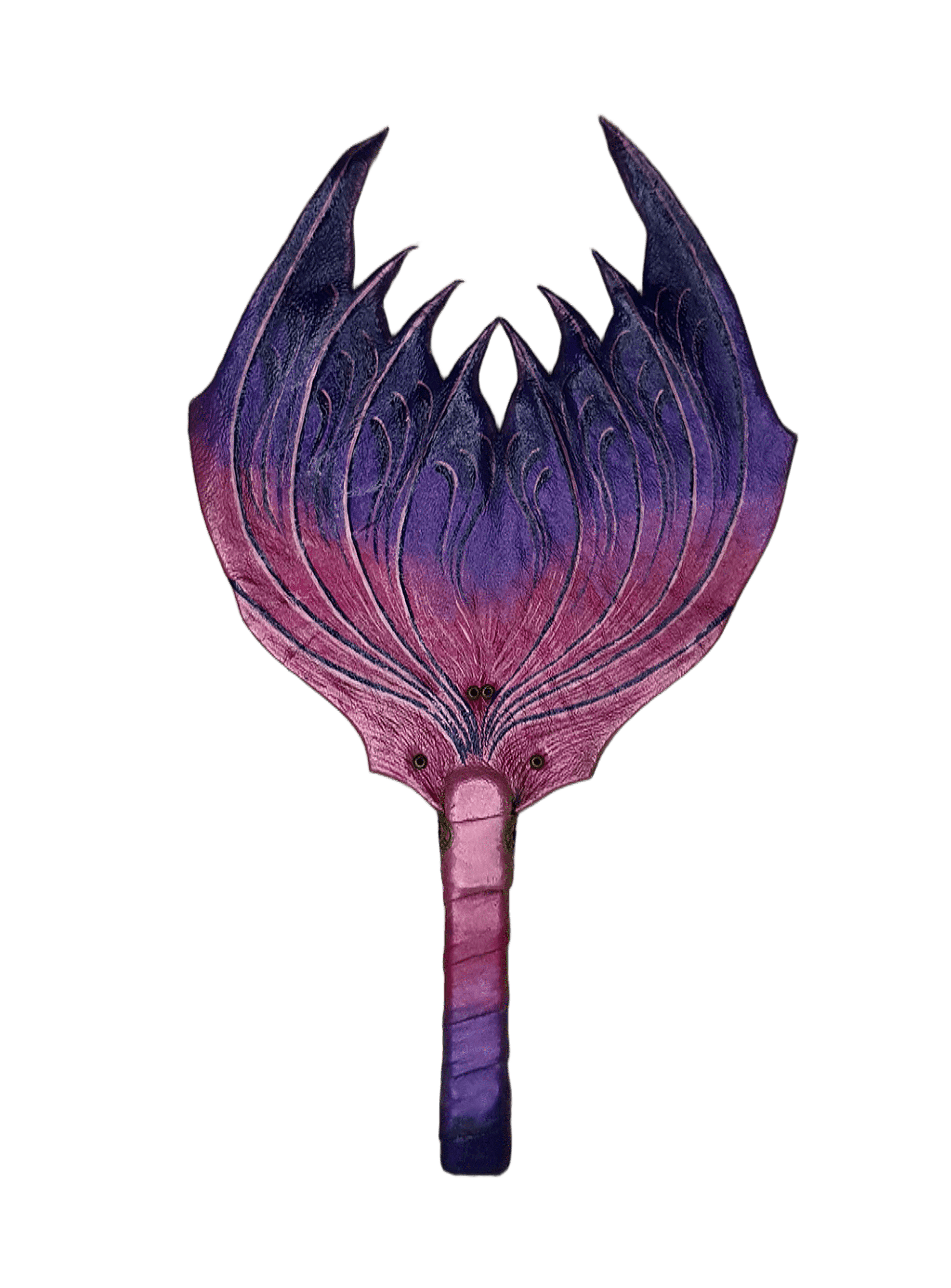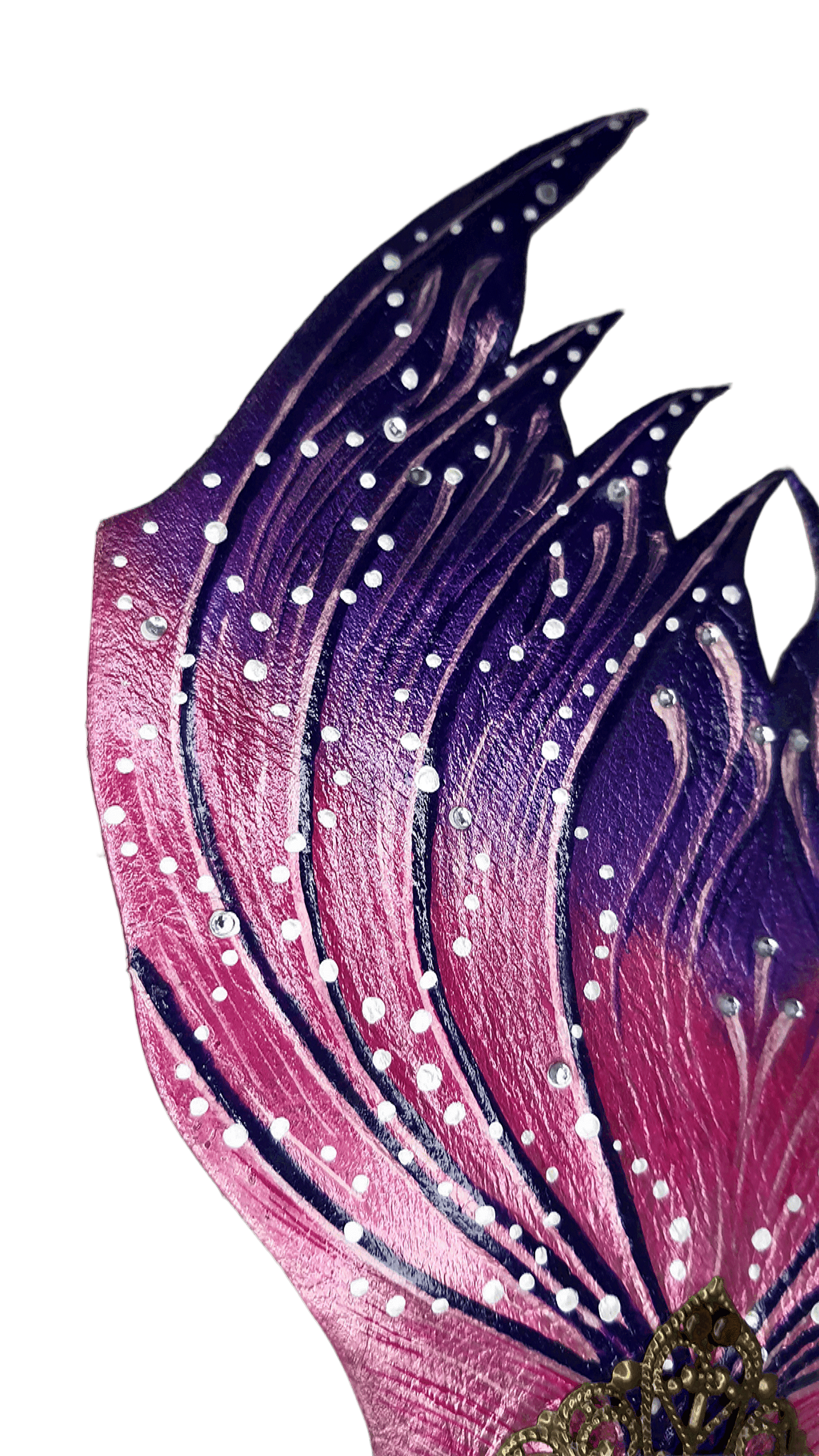 Unique hand fan made from high-quality leather stylized after a mermaid's tail. Painted with acrylic paints, covered with a protective polish.