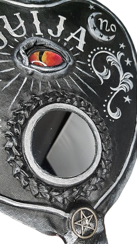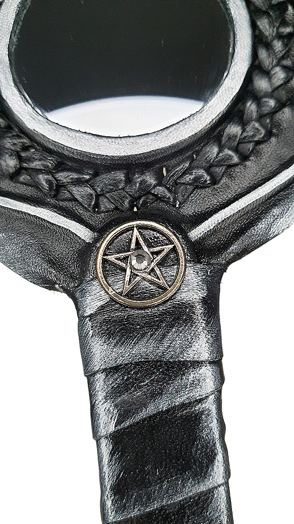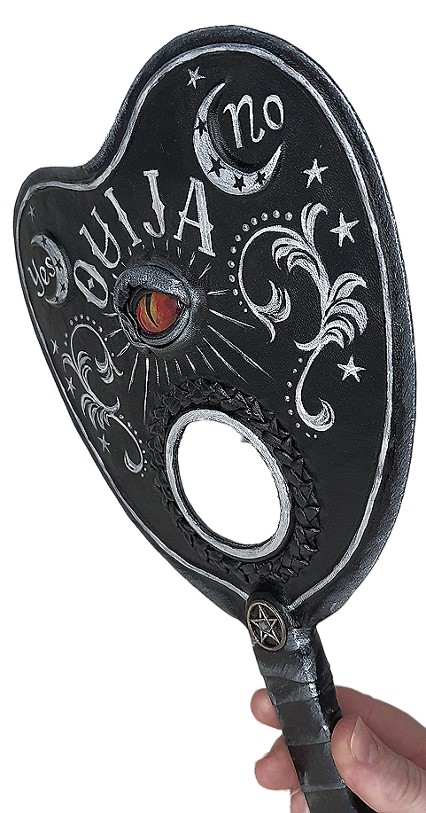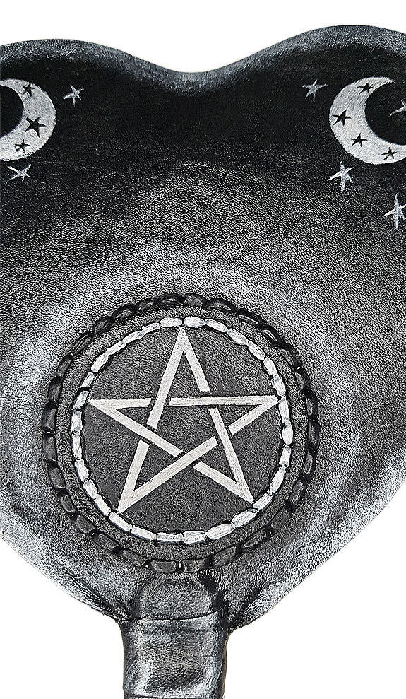 Unique hand fan made from high-quality leather. Painted with acrylic and glowing in the dark luminescent paints, covered with a protective polish.